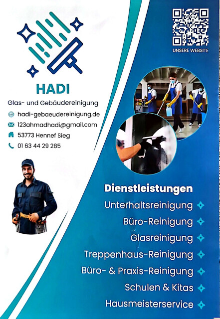 Ahmad Hadi steht für erstklassige Reinigungsdienste in Hennef und Umgebung. Mit einem breit gefächerten Angebot von Gebäudereinigung über Industriereinigung bis zur Fenster-, Büro- und Glasreinigung decken wir sämtliche Bedürfnisse unserer Kunden ab. Wir sind Ihr zuverlässiger Partner für Sauberkeit und Hygiene in jedem Umfeld.